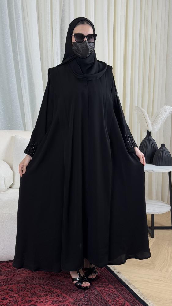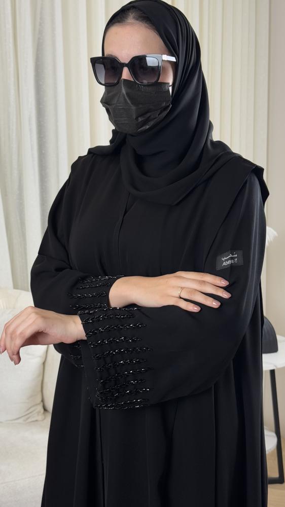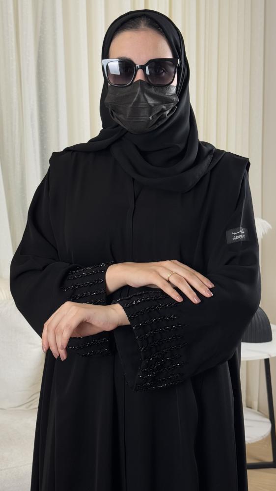 عباية شادن اسود بتصميم فخم وانيق المحاكة بقماش ملكي بقصه مميزه واكمام كرستال اسود بتصميم حديث وراقي يتناسب مع ذائقتك ليضيف لإطلالتك الكثير من الجمال 🤍