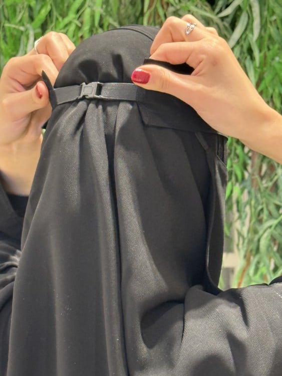 - القماش الذي صنع منه النقاب مزود بفتحات تهوية تسمح بدخول الهواء.